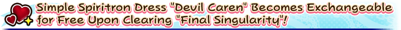 The Simple Spiritron Dress "Devil Caren" Wardrobe Key for ★5 (SSR) Caren C. Hortensia (Amor (Caren)), exchangeable through "Dress Making" in the Da Vinci Workshop, will become exchangeable for free upon clearing Final Singularity!