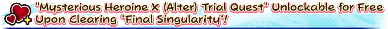 "Mysterious Heroine X (Alter) Trial Quest", available for exchange in "Exchange Rare Prisms" within the Da Vinci Workshop, will be made exchangeable for free upon clearing Final Singularity!