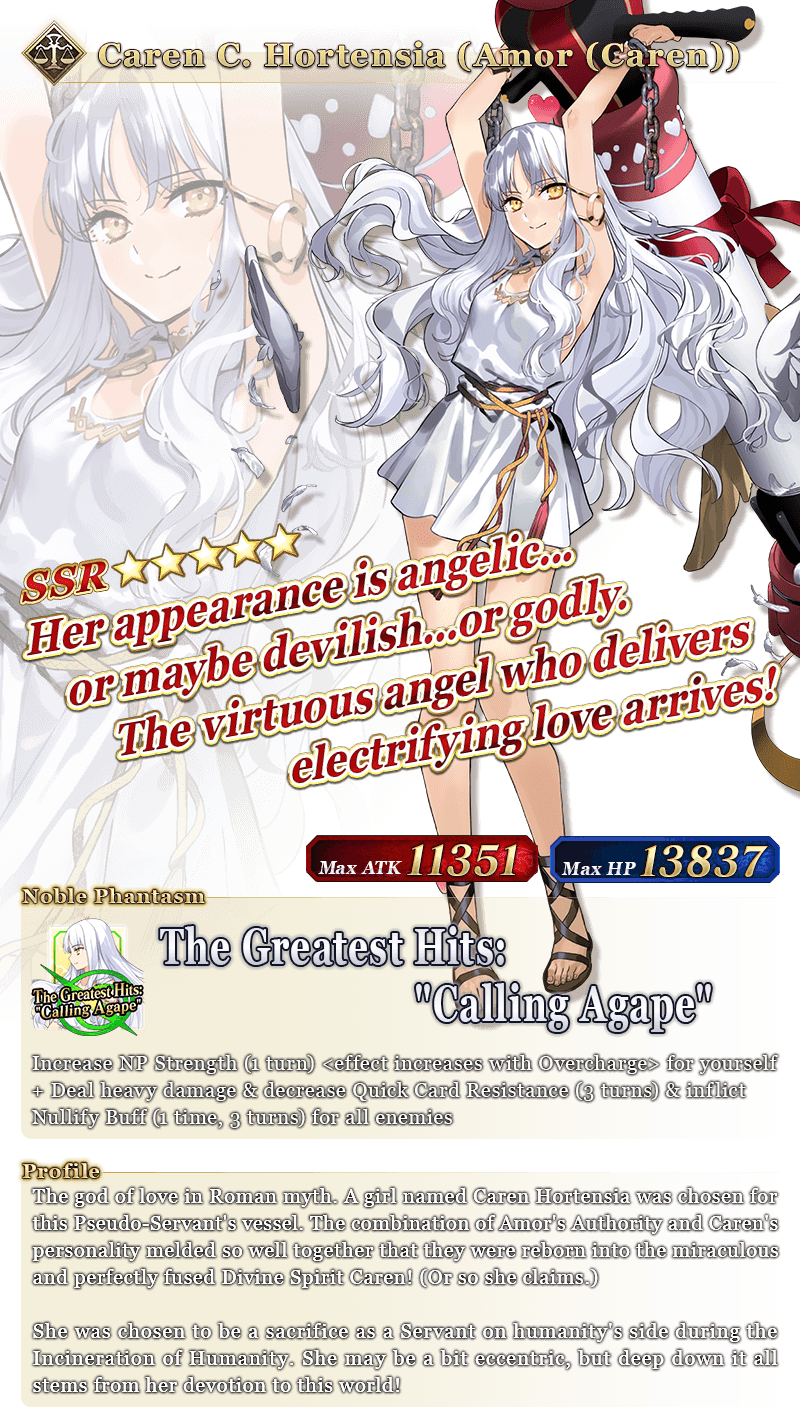 * The name displayed on Amor (Caren)'s Saint Graph will change to "Caren C. Hortensia" with Ascension.