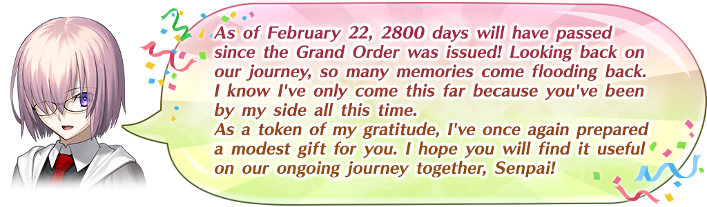 The presents will be sent to your Present Box on the first login between 2025-02-22 20:00 - 02-23 19:59 PST (GMT -8).