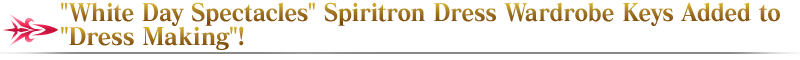 The Spiritron Dress and Glasses Spiritron Dresses that were featured in last year's limited time "White Day Spectacles" will be added to "Dress Making" in the Da Vinci Workshop!