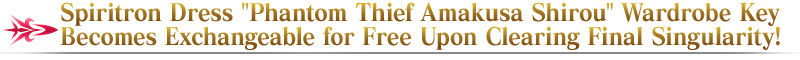 * There will be no time limit on free exchange for the Spiritron Dress "Phantom Thief Amakusa Shirou" Wardrobe Key.