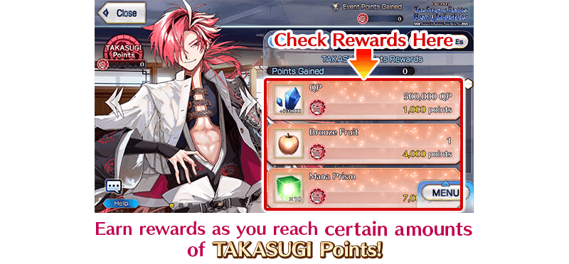 * Your TAKASUGI Points total increases as you gather TAKASUGI Points through battle drops in event quests.