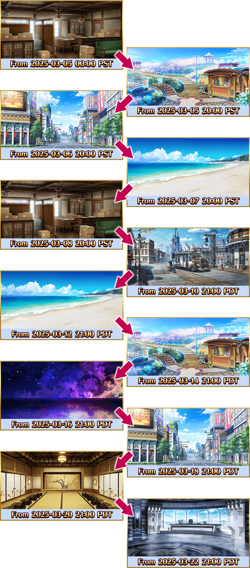 Throughout this period the background in My Room will change periodically, so enjoy taking photos of your Servants against a variety of backgrounds!