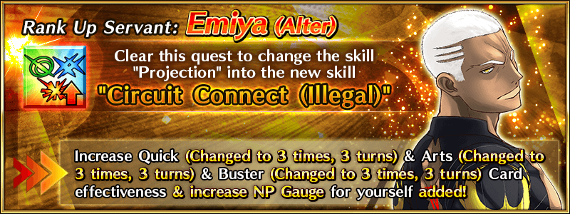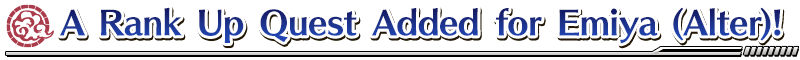 A Servant Rank Up Quest to strengthen ★4 (SR) Emiya (Alter) will be permanently added to Chaldea Gate.