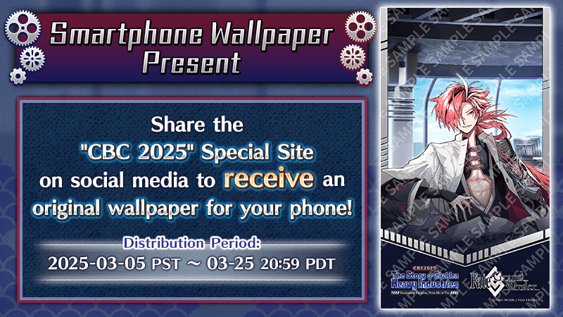 We'll be distributing a wallpaper for your smartphone from the Limited Time Event "CBC 2025: The Story of Chaldea Heavy Industries - Business to Business, From Me to You" Special Site!