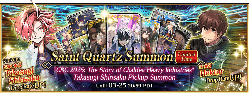 "'CBC 2025: The Story of Chaldea Heavy Industries' Takasugi Shinsaku Pickup Summon" Details: