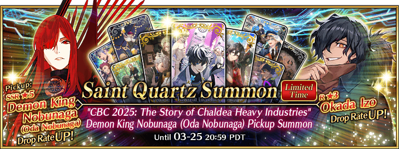 "'CBC 2025: The Story of Chaldea Heavy Industries' Demon King Nobunaga (Oda Nobunaga) Pickup Summon" Details: