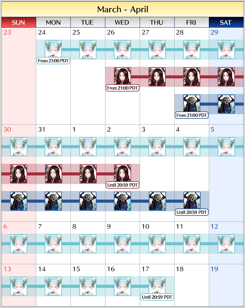 - If multiple Limited Time Pickup Summons are available at once, the number of summons you have performed will be counted individually for each Pickup Summon (each page on the Summon Screen). In addition, summons will be counted individually for each Summon Period that the Pickup Lineup changes for a Daily Pickup Summon. For example, in a Daily Pickup Summon where the Pickup Lineup changes each day at 21:00 PDT (GMT -7), your summon count will be reset at the moment the Pickup Lineup changes.