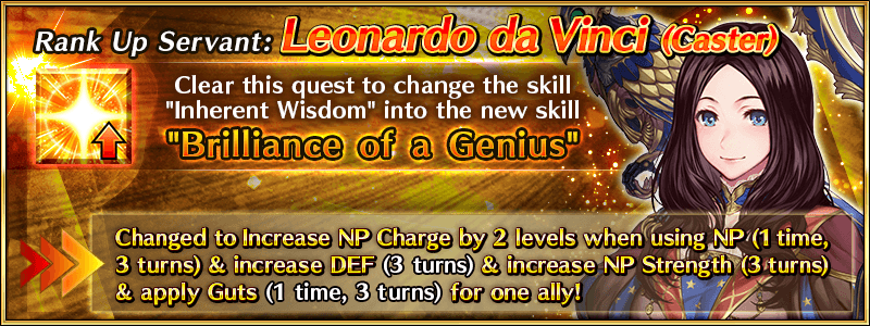 Servant Rank Up Quests to strengthen ★5 (SSR) Leonardo da Vinci (Caster) and ★5 (SSR) "First Hassan" will be permanently added to Chaldea Gate.