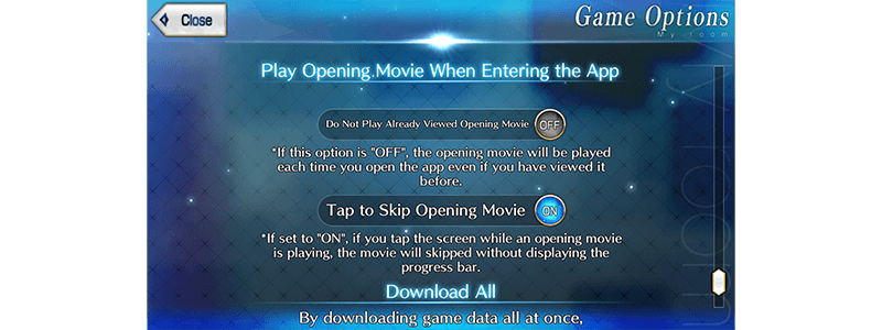 2. "Play Opening Movie When Entering the App" Game Options Improved!