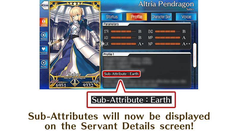 You will now be able to check each Servant's sub-Attributes (Heaven, Earth, Human, Star, Beast) on the Servant Details screen.