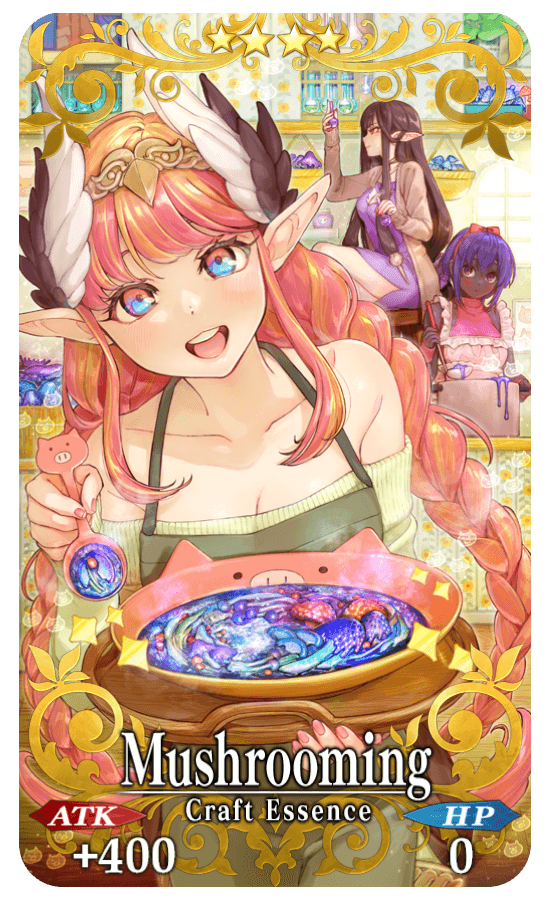 Limited Time Craft Essences - ★5 (SSR) Great Mother - ★4 (SR) Mushrooming - ★3 (R) Service Games