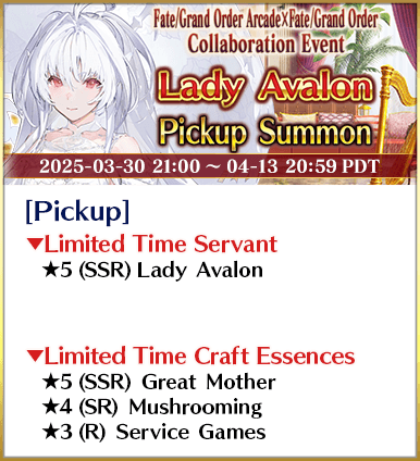 "Fate/Grand Order Arcade×Fate/Grand Order Collaboration Event Pickup 2 Summon" Period: