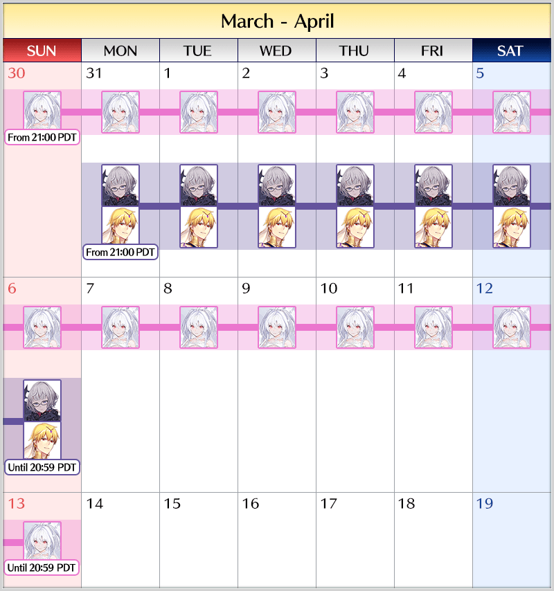 2025-03-30 21:00 - 04-13 20:59 PDT (GMT -7)