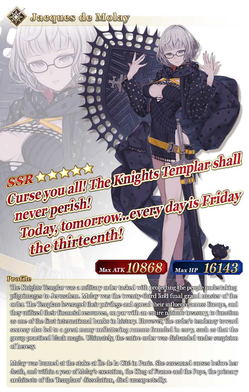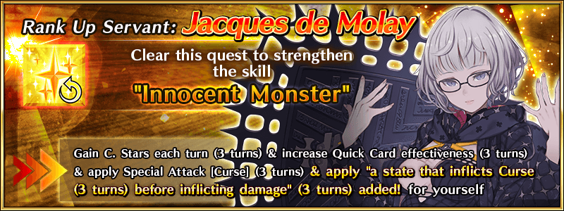 Servant Rank Up Quests to strengthen ★5 (SSR) Jacques de Molay and ★4 (SR) Gilgamesh (Caster) will be permanently added to Chaldea Gate.