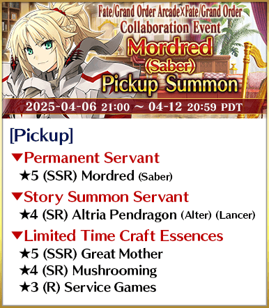 "Fate/Grand Order Arcade Collaboration Event Pre-Release Pickup Summon" Details: