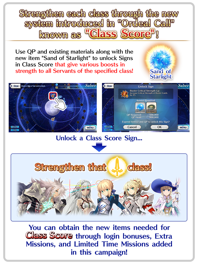 To celebrate the release of Class Score, you can get 12 Saint Quartz from these limited time missions!