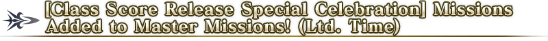 During the period below, [Class Score Release Special Celebration] Missions will be added to the "Ltd. Time" tab on the Master Missions screen.