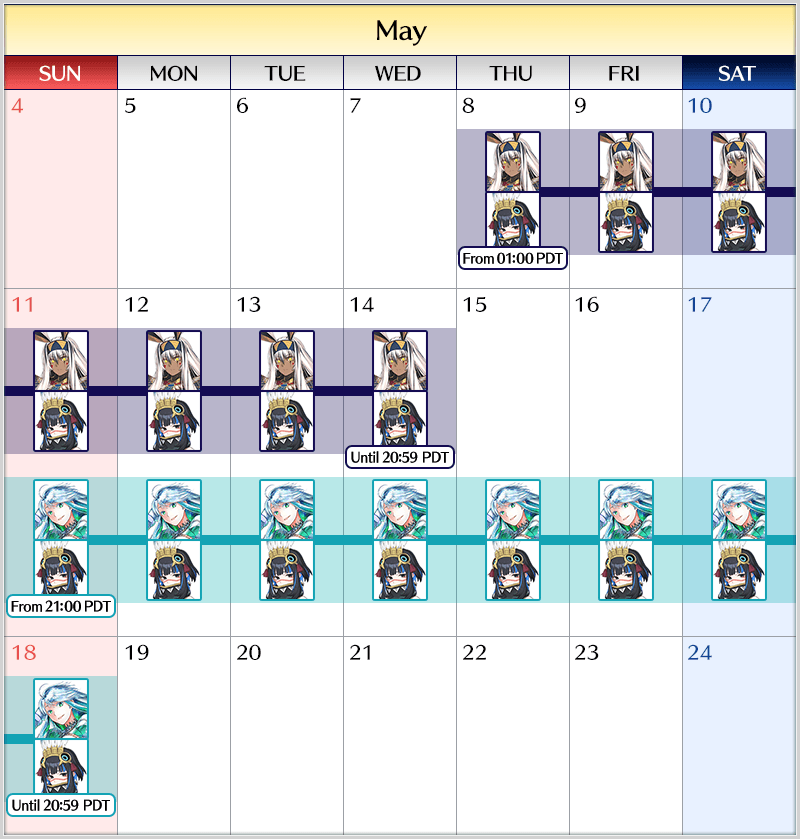 * Bonus Summons will be calculated separately for each Summon Lineup. * Please note that the Summon Period for each Pickup Summon will differ. * In this Summon, only the Pickup ★5 (SSR) Servant in each individual Summon will be eligible for the "Guaranteed Summon" feature.