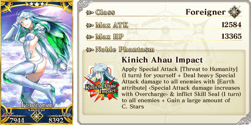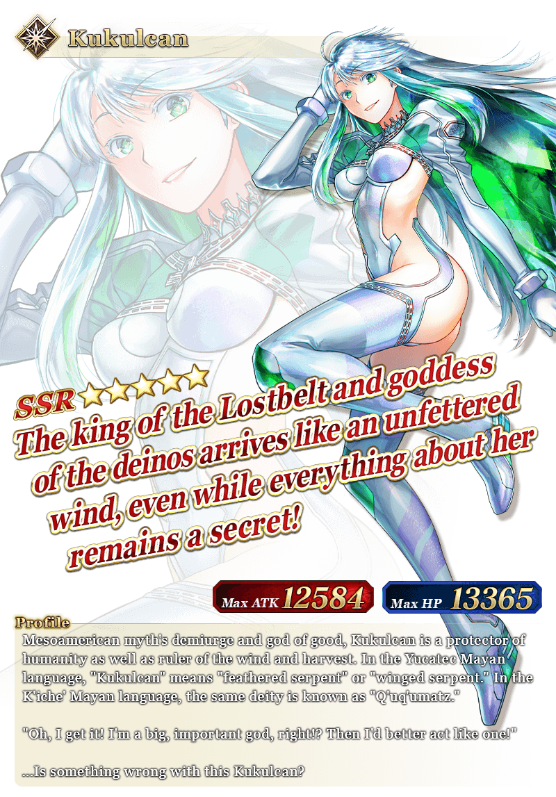 * The Noble Phantasm name and animations displayed for ★5 (SSR) Kukulcan will change when her battle sprite is set to Stage 3 Ascension.