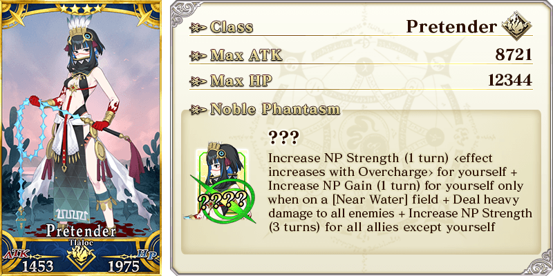 * The name displayed for ★4 (SR) Tenochtitlan (Tlāloc)'s Noble Phantasm will change based on story progression.