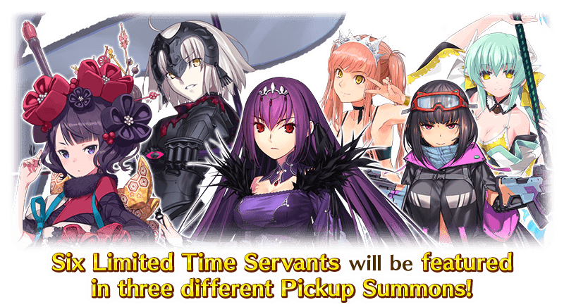 Six Limited Time Servants related to the three Servants added in "Pilgrimage Festival: Part 3" will be available for Pickup in three Pickup Summons!
