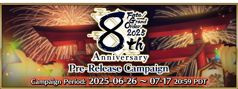 "Fate/Grand Order 2025 8th Anniversary Pre-Release Campaign" Details: