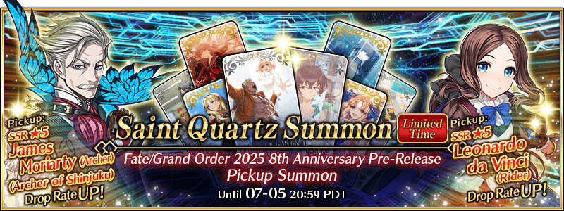 "Fate/Grand Order 2025 8th Anniversary Pre-Release Pickup Summon" Details: