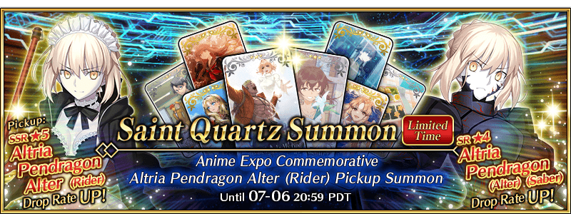 "Anime Expo Commemorative Altria Pendragon Alter (Rider) Pickup Summon" Period:
