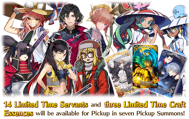 During the Pickup Period, the Pickup Servants and Pickup Limited Time Craft Essences will have an increased drop rate!
