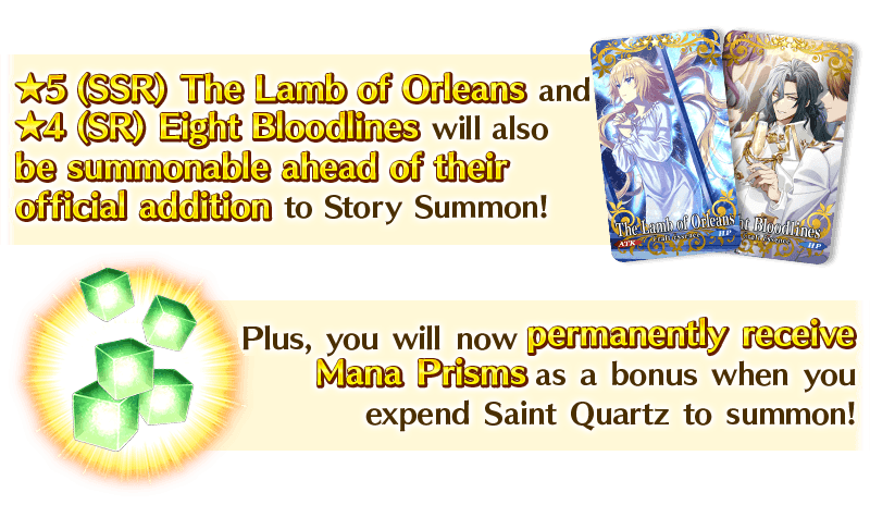Early Release Permanent Craft Essences - ★5 (SSR) The Lamb of Orleans - ★4 (SR) Eight Bloodlines