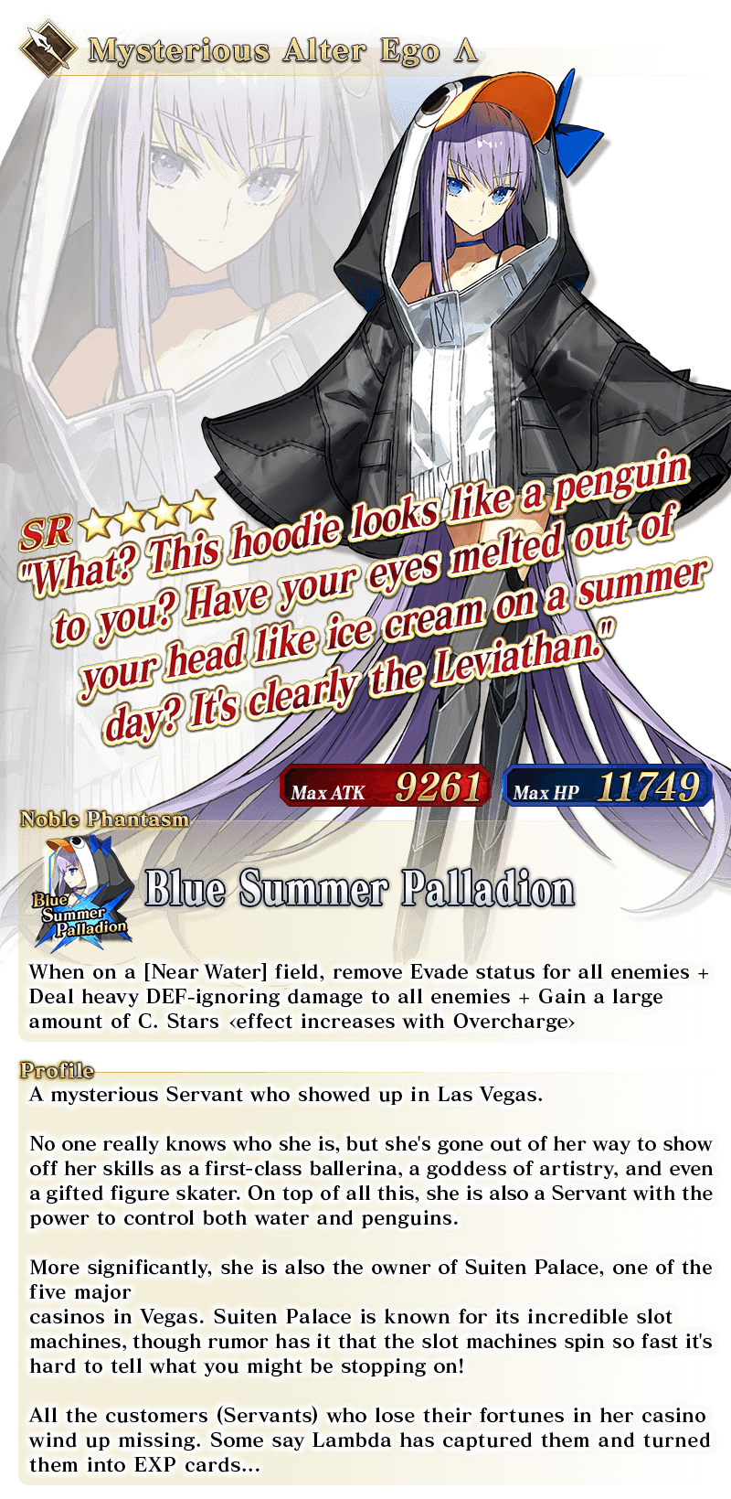 * Please note that while this Servant’s name is "Mysterious Alter Ego Λ", her class is Lancer.