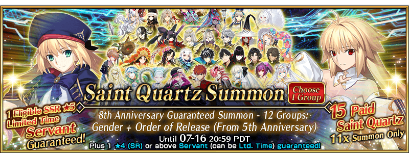"8th Anniversary Guaranteed Summon - 12 Groups: Gender + Order of Release (From 5th Anniversary)" Details: