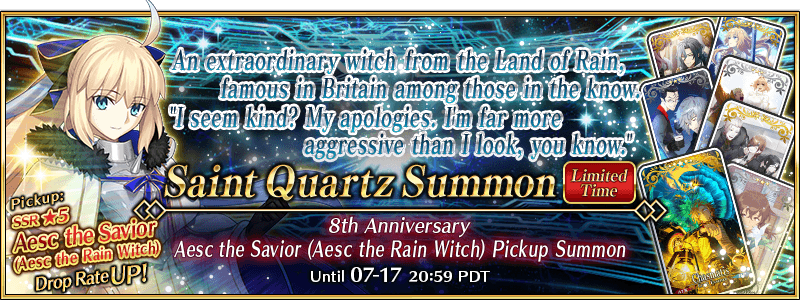 "8th Anniversary Aesc the Savior (Aesc the Rain Witch) Pickup Summon" Details: