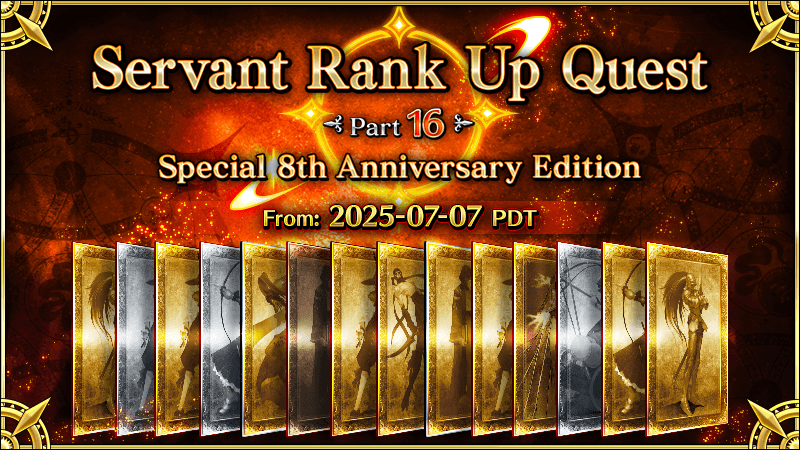 To celebrate "Fate/Grand Order 2025 - 8th Anniversary", new Rank Up Quests will be permanently added for a total of 14 Servants!