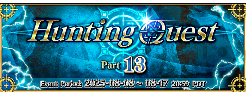 * From 2025-08-08 00:00 PDT (GMT -7), an "Event Bonus" filter for "Hunting Quest: Part 13" will be added to the Servant Selection screen within Hunting Quests and on the Party Setup screen. * The name displayed for ★5 (SSR) Aesc the Savior (Aesc the Rain Witch) will change from "Aesc the Rain Witch" to "Aesc the Savior" with Stage 2 Ascension. * The name displayed for ★4 (SR) Cnoc na Riabh will be different in-game.