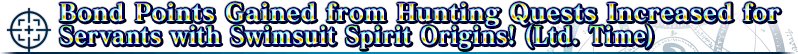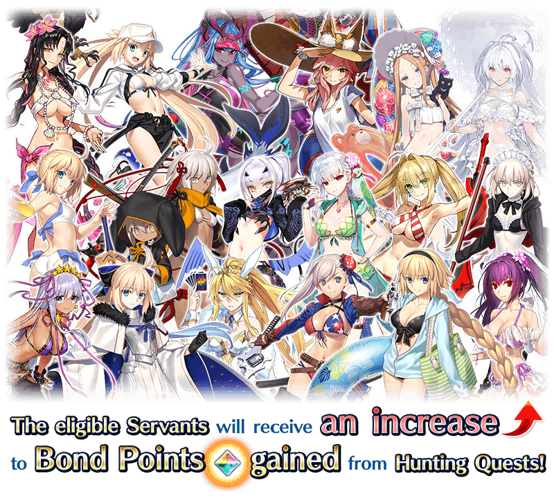 During the following period, the Servants listed below will receive a Bond Points gained bonus in all Hunting Quests!