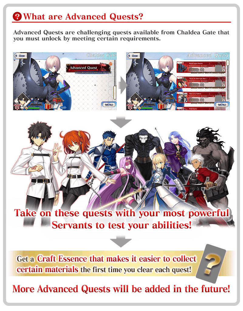 For a limited time, all Advanced Quests will have their AP costs reduced to 1 AP!