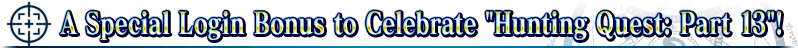 * The eligibility requirements to participate in "Hunting Quest: Part 13" and to receive the special login bonuses are different. Please note that even if you are able to participate in "Hunting Quest: Part 13", you will not be able to receive the special login bonuses if you do not meet the eligibility requirements specified above.