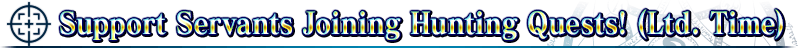 Borrow the Support Servants' strength during the period below to help you clear the quests!
