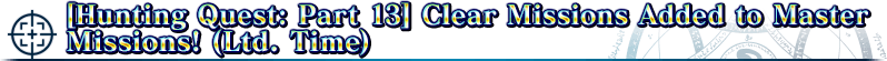 [Hunting Quest: Part 13] Limited Missions will be added to the "Ltd. Time" tab on the Master Missions screen for a limited time during the period below.