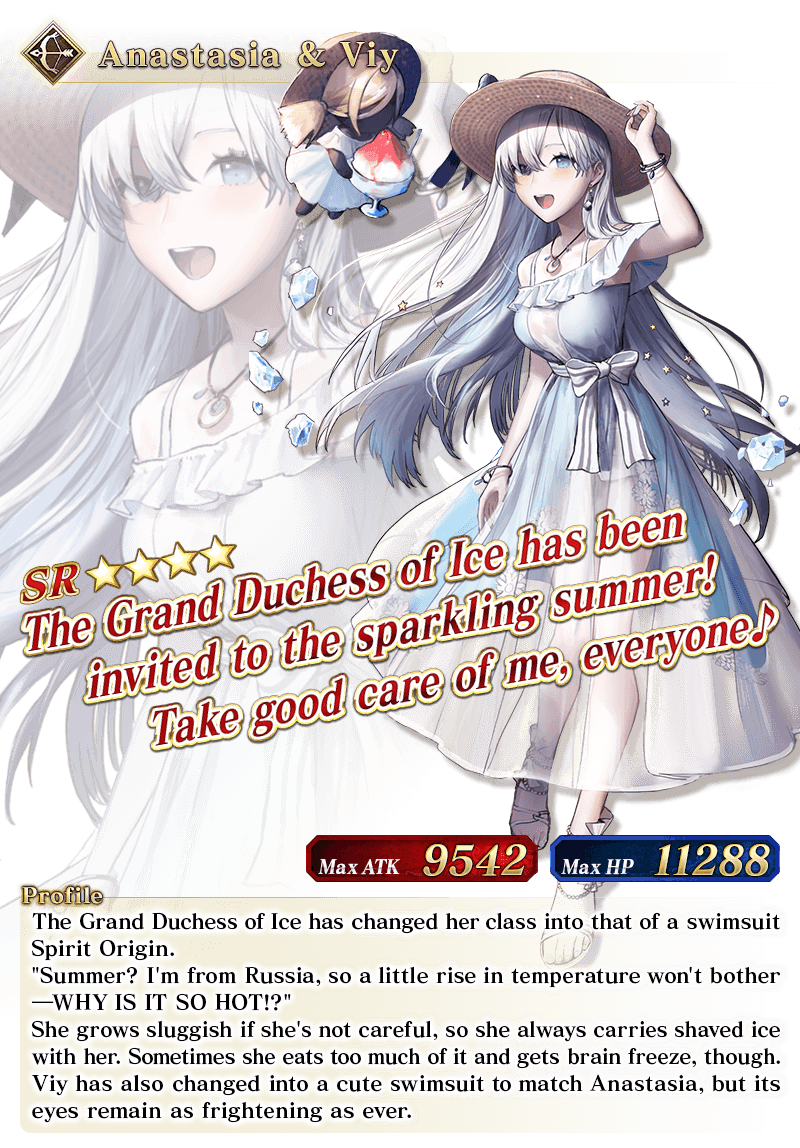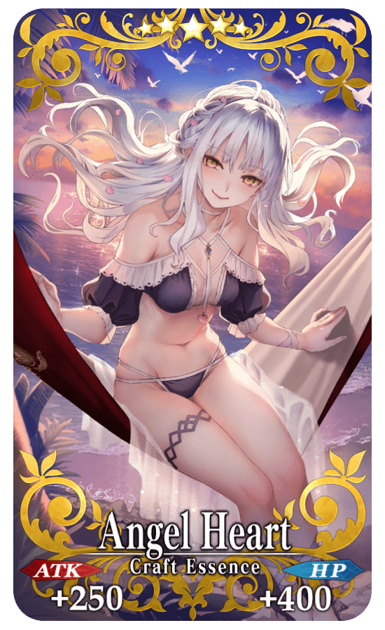 About Featured Craft Essences: * The following are the only Limited Time Craft Essence(s) available from this Pickup Summon. Please note that no other Limited Time Craft Essences will be available. In addition, the following Craft Essence(s) will only be summonable from the Summon Lineup(s) where they are featured as Pickup Craft Essences. Please be sure to confirm the lineup before summoning. - ★5 (SSR) Innocent Blue - ★5 (SSR) Emerald Float - ★5 (SSR) Angel Heart - ★5 (SSR) Treasure of the Caribbean - ★5 (SSR) Honey Lake - ★5 (SSR) Hero on the Beach - ★4 (SR) Golden Trails - ★4 (SR) Climbing Battle - ★4 (SR) Sunset Jam - ★4 (SR) Raging Wind - ★4 (SR) Happy☆Drive - ★4 (SR) Pink Beach - ★3 (R) On the Colorful Seaside Corner - ★3 (R) All-Night Fever - ★3 (R) Pirates of the Jungle - ★3 (R) Horror Concierge - ★3 (R) BFF BBQ - ★3 (R) Writer's High * The following Craft Essence(s) will also be available from Friend Point Summon only for the duration of the Pickup Summon(s) where they are featured as a Pickup Craft Essence. In addition, the Craft Essence(s) will be automatically burned if you have ★3 (R) Craft Essences included in your Automatic Burning settings. Please check your settings before summoning. - ★3 (R) On the Colorful Seaside Corner - ★3 (R) All-Night Fever - ★3 (R) Pirates of the Jungle - ★3 (R) Horror Concierge - ★3 (R) BFF BBQ - ★3 (R) Writer's High