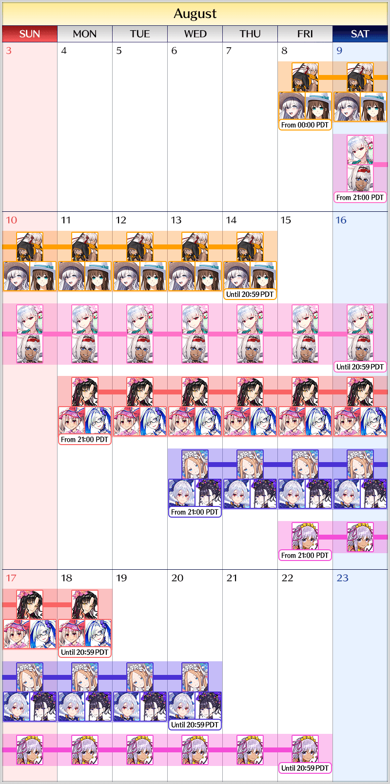 - If multiple Limited Time Pickup Summons are available at once, the number of summons you have performed will be counted individually for each Pickup Summon (each page on the Summon Screen). In addition, summons will be counted individually for each Summon Period that the Pickup Lineup changes for a Daily Pickup Summon. For example, in a Daily Pickup Summon where the Pickup Lineup changes each day at 21:00 PDT (GMT -7), your summon count will be reset at the moment the Pickup Lineup changes.