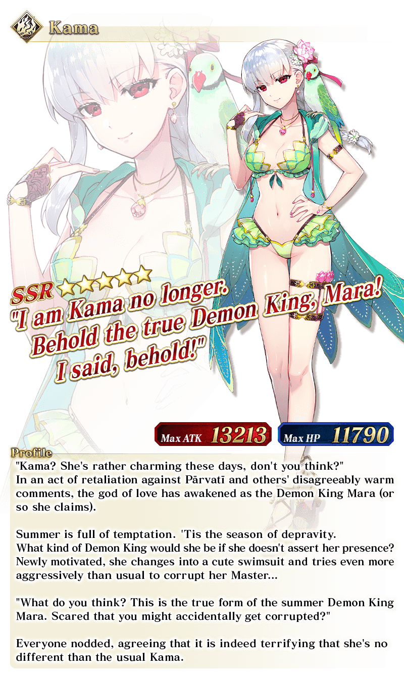 * The name and animations displayed for ★5 (SSR) Kama (Avenger)'s Noble Phantasm will change based on Ascension stage.