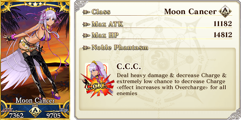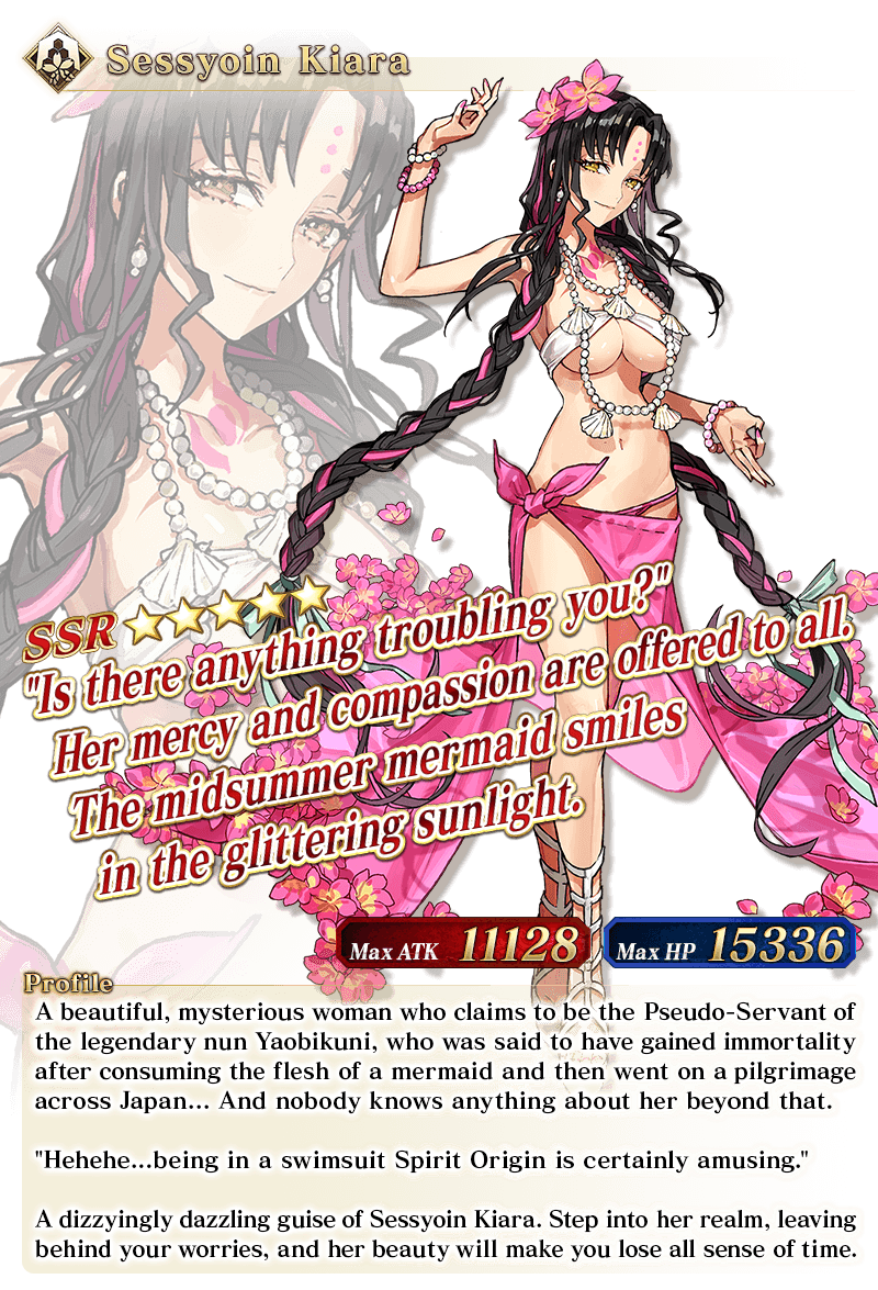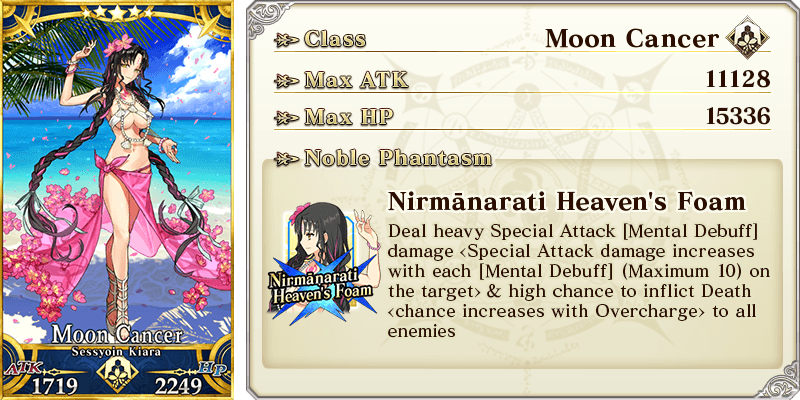 * The animations displayed for ★5 (SSR) Sessyoin Kiara (Moon Cancer)'s Noble Phantasm will change based on Ascension stage.