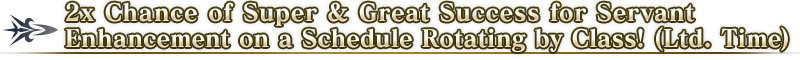 The period Servants are eligible for a doubled chance of Super Success and Great Success will change depending on their class.