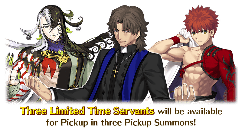 To go along with the "Ordeal Call New Duties Unlocked: Part 2" campaign, three Limited Time Servants will be featured in three Pickup Summons!