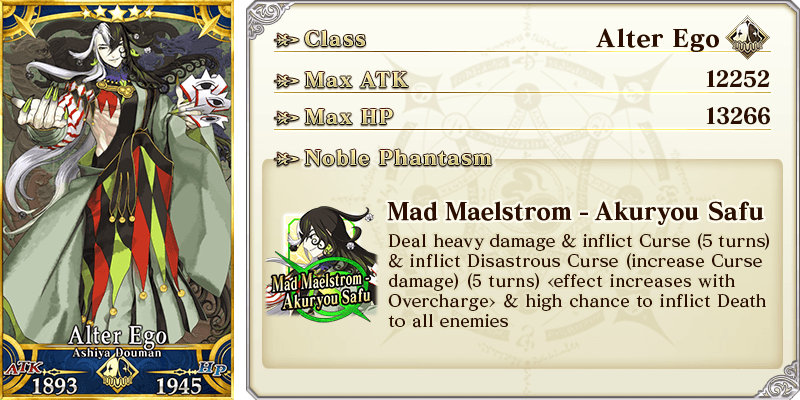 * The Saint Graph and battle sprite displayed for ★5 (SSR) Ashiya Douman will only change to Stage 2 with Ascension.