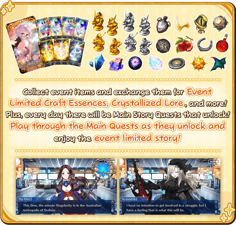 Equip Event Limited Craft Essence and Limited Time Craft Essences to receive various bonuses in the event.